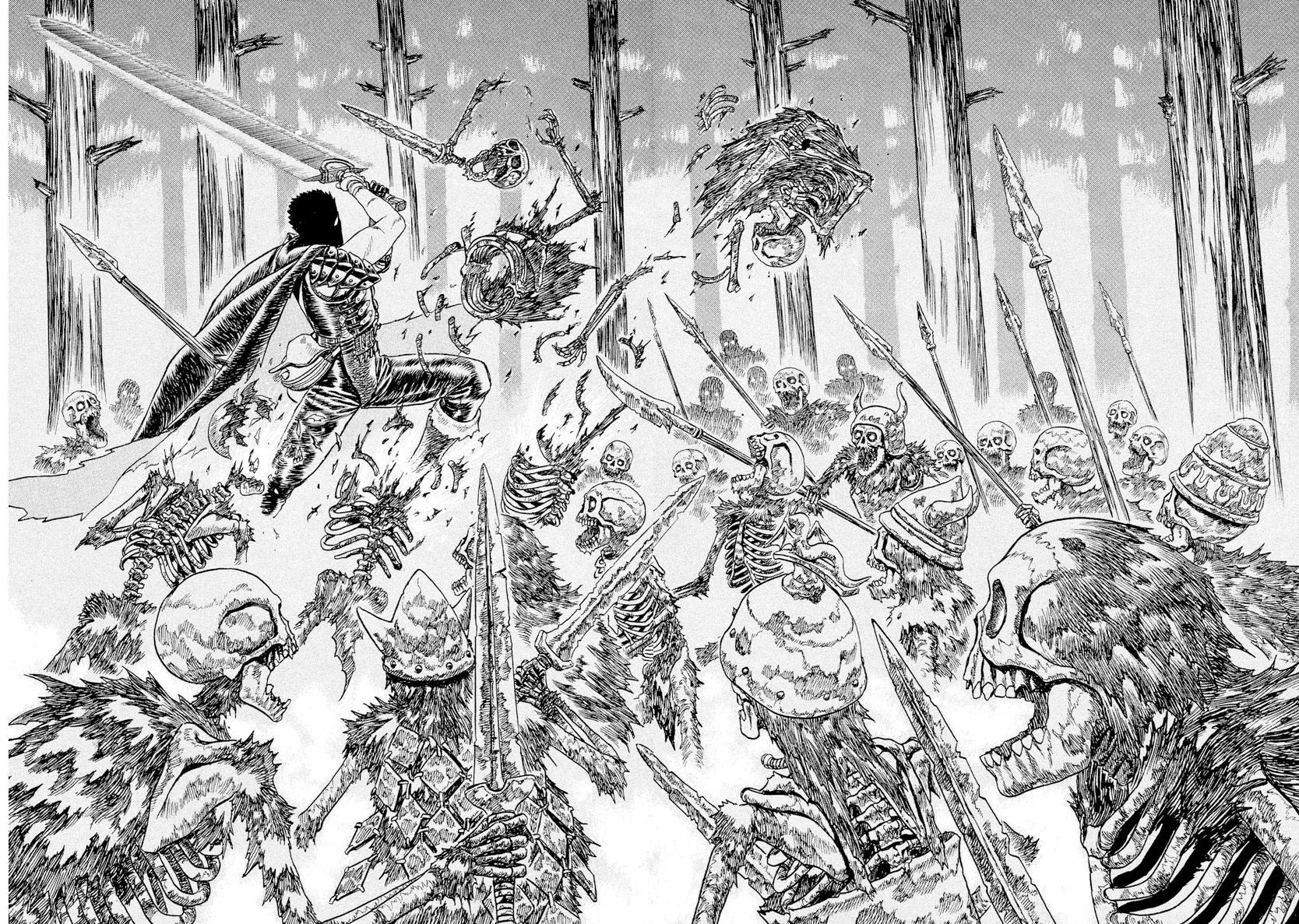 Guts luchando contra hordas de "zombis".