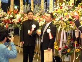 Miura ganhando o prêmio Ozamu Tezuka