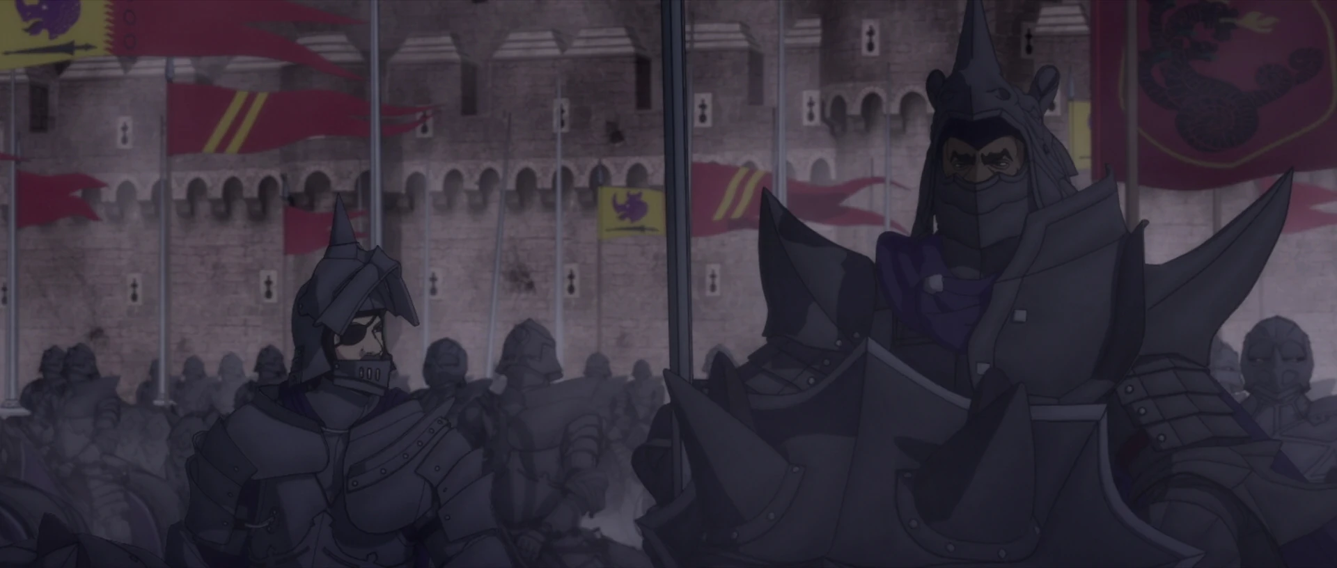 Босконь — генерал Тюдорской империи и командир рыцарей Пурпурного Носорога в битве за крепость Долдрей. Это опытный военачальник и прославленный воин, его командование на поле боя — одна из причин, по которой крепость Долдрей оставалась неприступной. Его излюбленным оружием является бердыш на длинном древке. Он оказался равен тогдашнему Гатсу по силам и мастерству и из-за того, что меч Гатса сломался, Босконь мог его одолеть, но Зодд помог Гатсу, послав свой меч и Гатс этим мечом срубил Босконю голову.