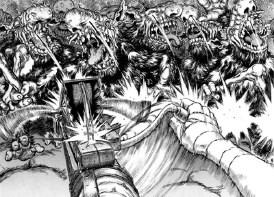 Скорострельный арбалет Гатса сильно напоминает по конструкции чо-ко-ну, средневековый китайский многозарядный арбалет.