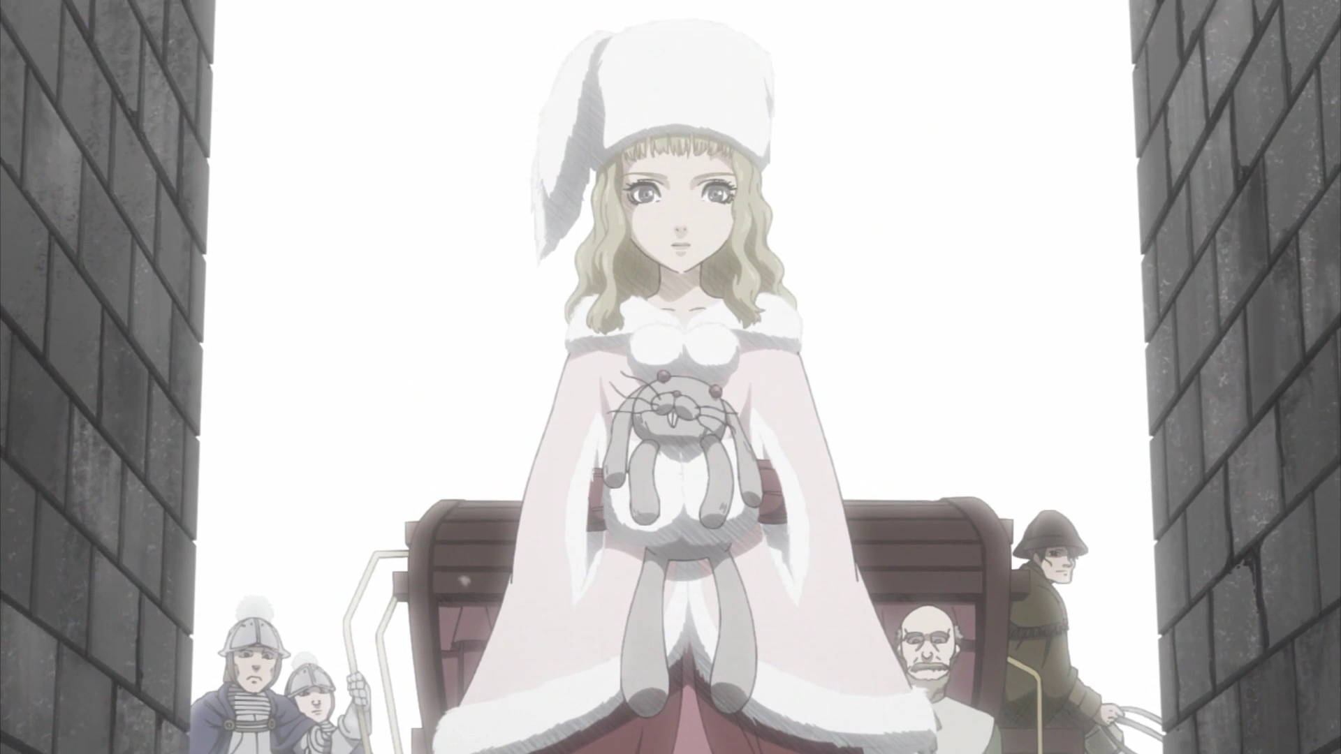 Испуганная Фарнезе, спасенная Гатсом.