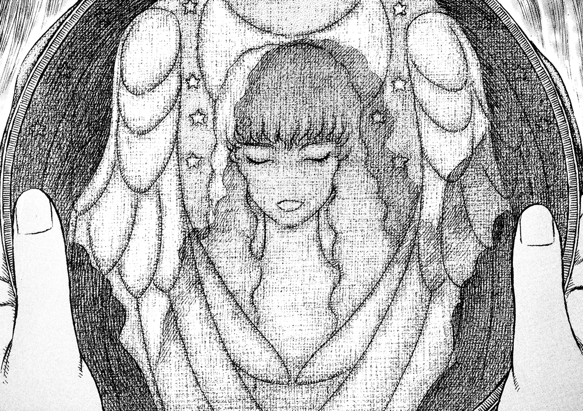 A sudden gust of wind alerts Charlotte to the open window. She looks up to see that there is a man in her room, though she cannot make out who it is because the moonlight does not hit him. Fearing for her life, Charlotte presses her embroidery of Griffith's face to her own, only to find that the shadow of the man in the room nearly perfectly fits the face of Griffith that Charlotte depicted on her embroidery.
